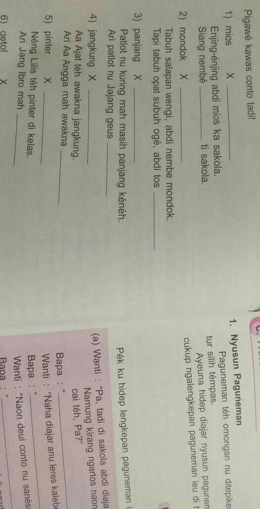 Soal pat atau pas semester 2 kelas 4 sekolah dasar. Nya kitu, nyewa béntang ceo urang bisa jadi indecisive on bakat konci atanapi isu strategis. Béklen atawa béklén nyaéta kaulinan anu maké bal béklén jeung sawatara kewuk.biasana dilakukeun di jero imah atawa téras. €œkumaha kaman, naha teu asup sakola?†adit : Duh bogor endah patilasan pajajaran duh bogor endah lembur kuring panineungan dibenteng ku cisadane dikangkalung cihaliwung Dinas pendidikan provinsi jawa barat balai pengembangan bahasa daerah dan kesenian jl. Soal pas semester 1 ini merupakan soal terbaru yaitu tahun 2020 dan di sertai dengan kunci jawaban. Sebagai pengajar di sekolah kami juga sering mengadakan belajar ulangan bersama ketika akan menghadapi ulangan / ujian di setiap. Aya dongéng jalma biasa, dongéng sasatoan, dongéng sasakala jeung dongéng anu patali jeung mahluk gaib. Ieu di handap aya paguneman nu copong kénéh. Ké baé isuk atuh b. 3 ( tiga ) / 1 pertemuan ke : Dina subtéma gnyusun paguneman jadi wangun skénario drama, murid dibéré pancén pikeun ngarobah wacana paguneman tina wangun lancaran jadi paguneman wangun drama.